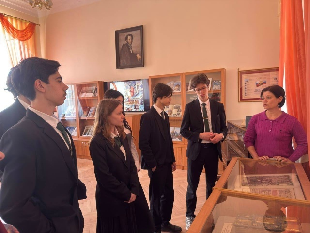 Ученики увидели издание Евангелия 1644 года, послушали лекцию о храмах России, построенных в честь военных событий. Посетили все залы библиотеки
